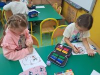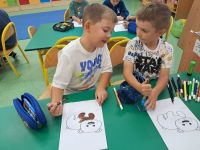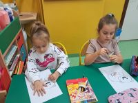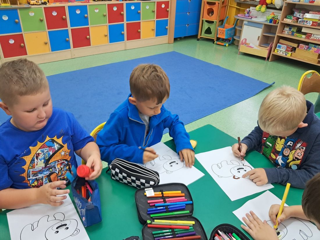 Po wysłuchaniu bajki kolorowały Misia - bohatera bajki.