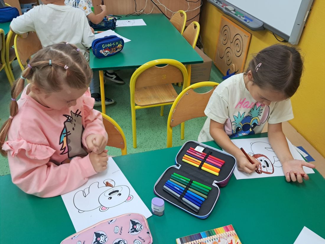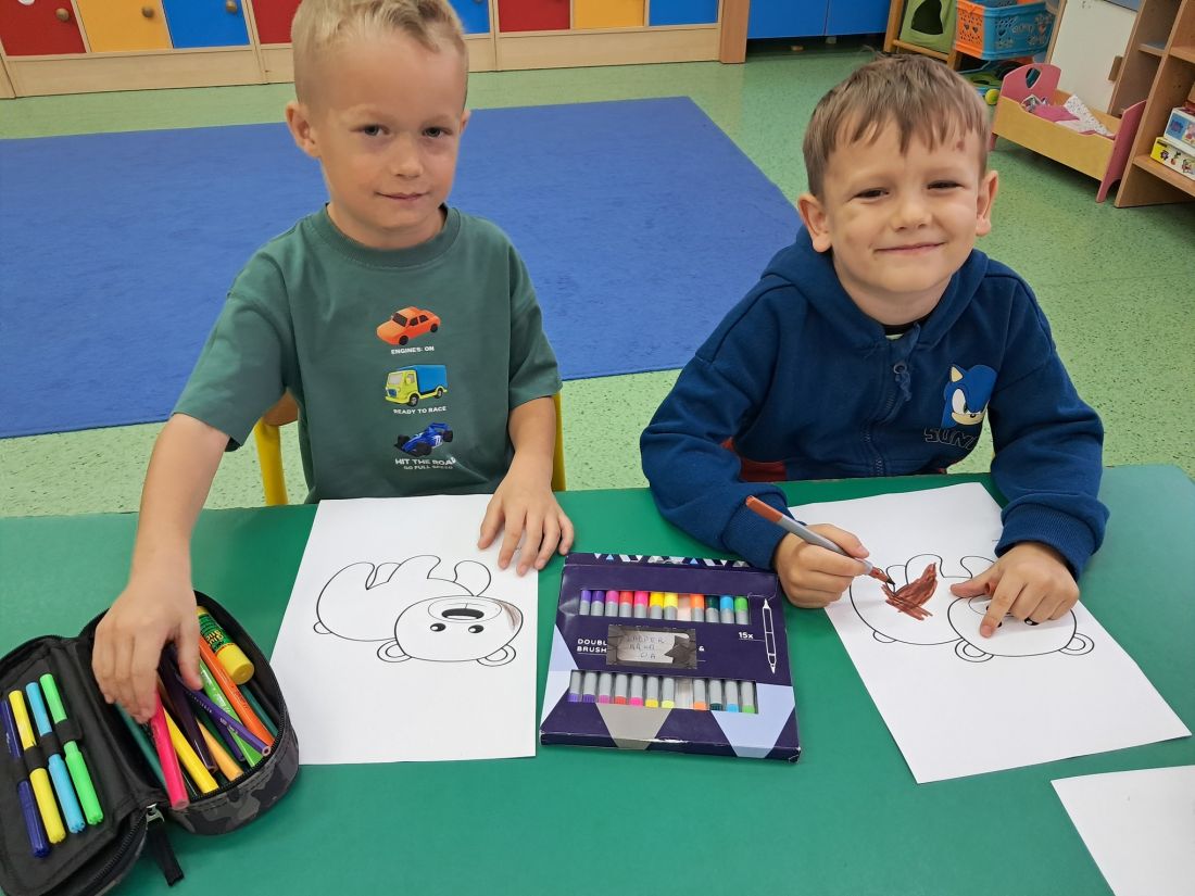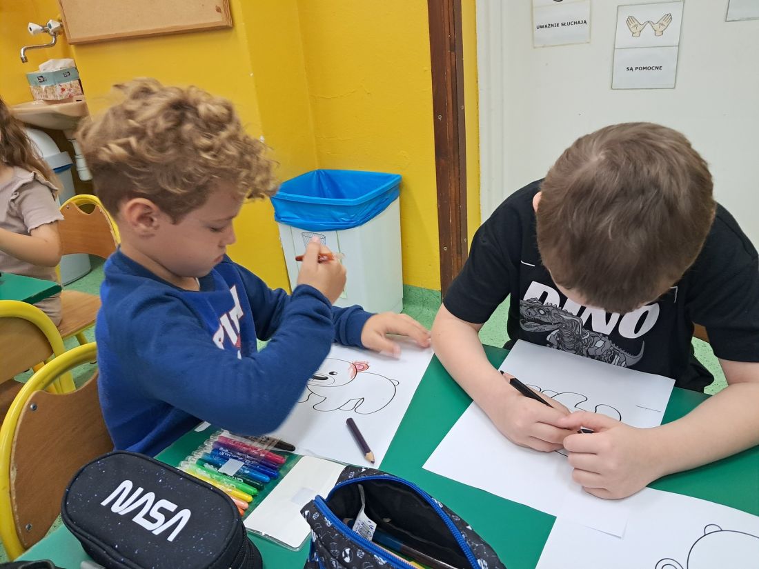 Wspólnie przeczytaliśmy bajkę terapeutyczną pt. "Mały Miś i przyjaciel Króliczek", która pomogła dzieciom oswoić lęk przed szkołą, ukazując, że emocje są naturalne, a przyjaźń i wsparcie pomagają je pokonać.