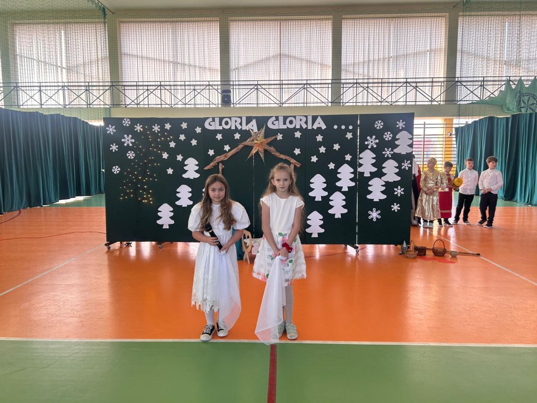 W piątek, 19 grudnia 2025 roku, w naszej szkole odbył się apel świąteczny z okazji Świąt Bożego Narodzenia. Uczniowie klas III a i III b zaprezentowali jasełka, wprowadzając wszystkich w wyjątkową, świąteczną atmosferę. Nowo narodzonemu Dzieciątku pokłon oddali pastuszkowie, dzieci oraz Trzej Królowie, którzy przynieśli swoje dary. Całość dopełnił taniec i śpiew aniołów, radośnie wyśpiewujących:„Gloria, gloria...”.