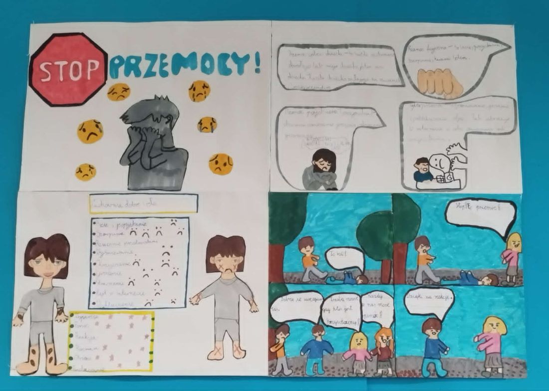 W listopadzie obchodzimy Międzynarodowy Dzień Przeciwdziałania Przemocy wobec Dzieci (19.11). Podjęliśmy tę tematykę również ze względu na realizowany niedawno Tydzień o budowaniu relacji. W przygotowanych przez klasy gazetkach widoczne jest, że tematyka - choć trudna - była uczniom przybliżana i to w wielu aspektach. Większość gazetek jest zrobiona bardzo solidnie, jest na nich wiele informacji, przygotowane są pomysłowo i ciekawie.