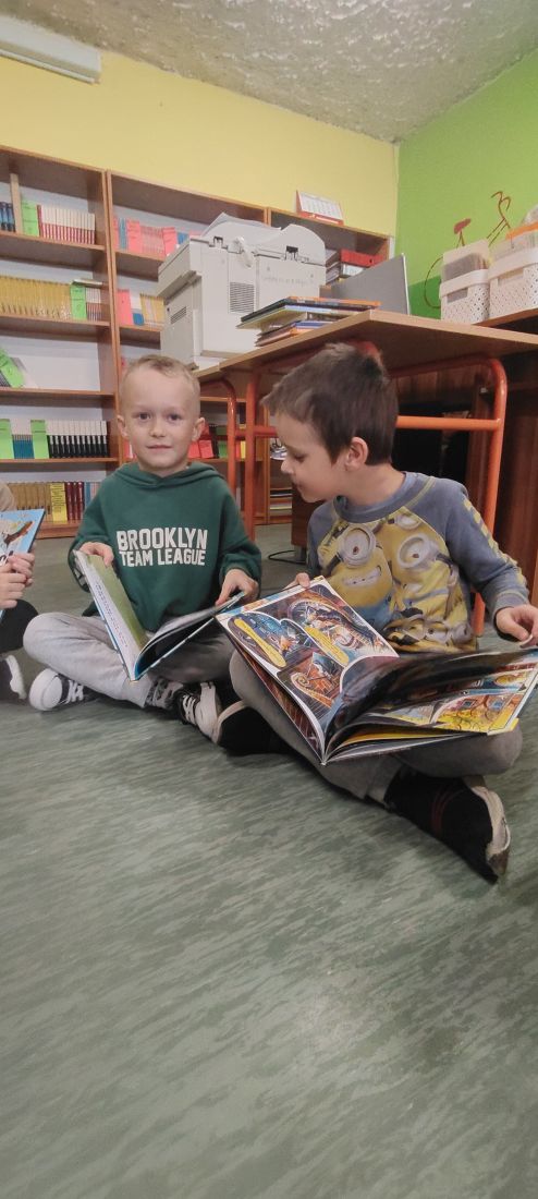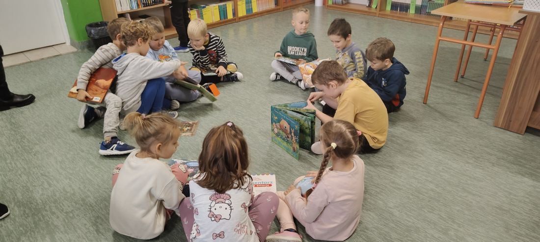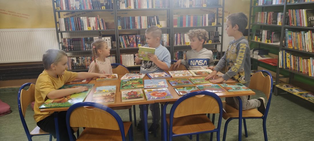 W październiku przedszkolaki z naszej szkoły również aktywnie uczestniczyły w działaniach w ramach Narodowego Programu Rozwoju Czytelnictwa. Wybraliśmy się wspólnie do biblioteki, aby oddać wypożyczone we wrześniu książki i uzupełnić naszą klasową biblioteczkę na kolejny miesiąc - październik. Celem wizyty było rozwijanie zainteresowań czytelniczych wśród dzieci. Dzieci zostały oprowadzone po bibliotece i z wielkim zainteresowaniem oglądały książki znajdujące się na półkach. Szczególnie zainteresował ich dział dla dzieci. Wprowadzenie dziecka w świat literatury już od najmłodszych lat jest ważnym elementem wychowania przez sztukę. Następnie każde dziecko mogło samodzielnie wyszukać i wziąć do ręki książeczkę, która je najbardziej zainteresowała.