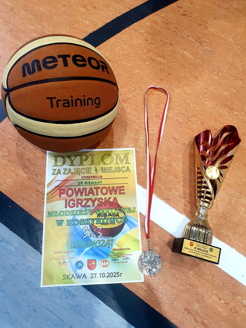 Nasze zawodniczki: Lea Ateba, Wiktoria Zacher, Anastazja Jarząbek oraz Nikola Maniowszczak – rozegrały znakomite mecze, wykazując się ogromnym zaangażowaniem, determinacją i sportowym duchem. W trakcie turnieju, który rozgrywany był systemem „każdy z każdym”, nasze dziewczęta odniosły dwa zwycięstwa, ulegając jedynie drużynie z Sieniawy. Z dumą informujemy, że drużyna dziewcząt z Maniów zdobyła tytuł Wicemistrza Powiatu w Igrzyskach Młodzieży Szkolnej w Koszykówce 3x3!