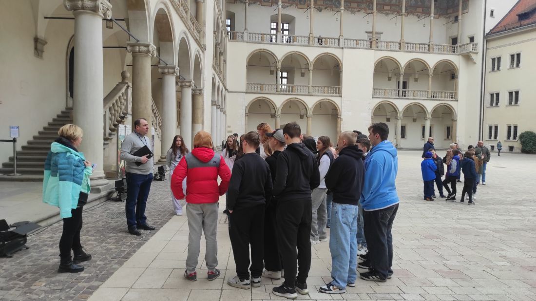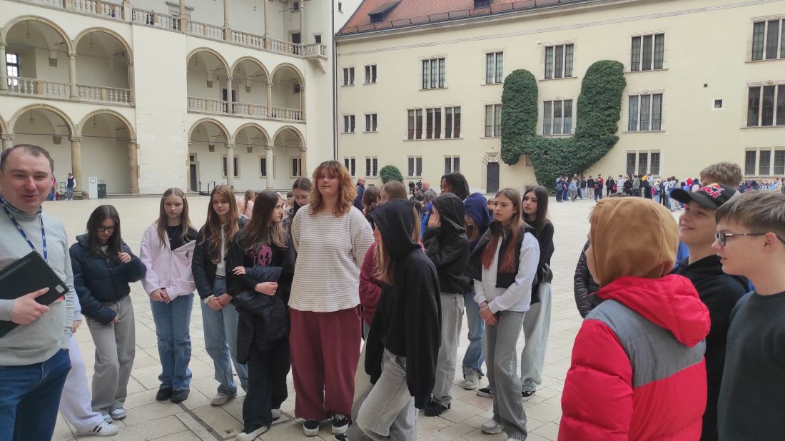 Klasa VII brała udział w wycieczce do Krakowa w dniu 14 kwietnia br.. Najpierw uczestniczyliśmy w warsztatach pt. “Wawel legendarny i historyczny”.  Na Zamku Królewskim na Wawelu, słuchaliśmy ciekawych opowieści o życiu w tym historycznym miejscu, wraz z edukatorem poznawaliśmy zakamarki pałacu.  Następnie udaliśmy się  na zabytkowy Kazimierz i tam w Muzeum Etnograficznym mieliśmy okazję wcielić się w różne postaci z minionej epoki, graliśmy w grę pt. “Krakowskim targiem”. Czas upłynął szybko i po spróbowaniu krakowskich lodów udaliśmy się do domu.